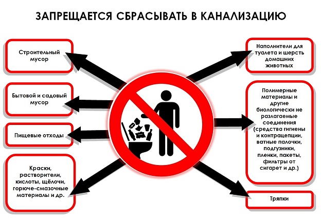 5. Не выкидывать в унитаз тряпки, стеклянные и металлические предметы, полиэтиленовые пакеты;
